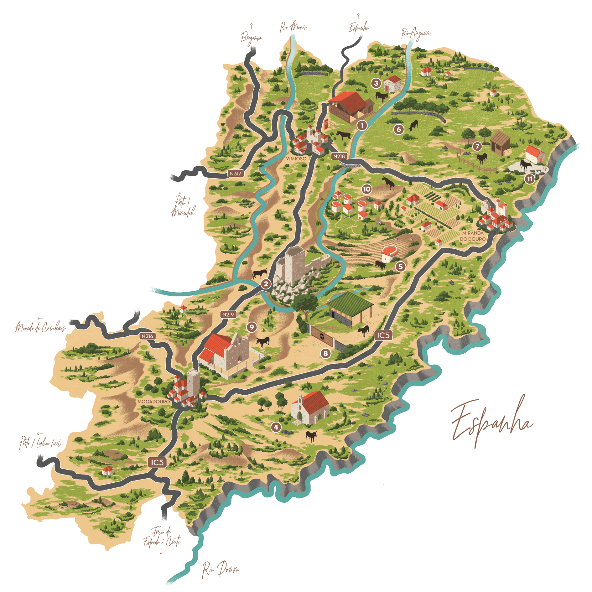 e descubra os destinos por eles indicados no Planalto Mirandês